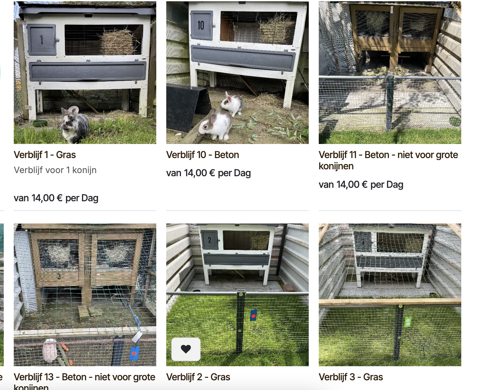 Al onze verblijven zijn voorzien voor 1-2 konijnen, heb je een grotere groep? Gelieve ons eerst te contacteren sommige verblijven kunnen we samenvoegen.